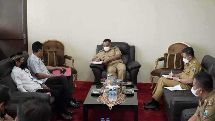 Bupati Lampung Selatan (Lamsel) Nanang Ermanto menerima audiensi Masyarakat Adat Way Urang dan Kalianda di ruang kerjanya. Selasa (1/3/2022).