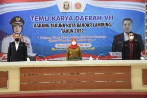 Alteripost.co Bandar Lampung – Pemerintah Kota (Pemkot) Bandar Lampung melibatkan karang taruna dalam kegiatan perayaan Hari Ulang Tahun (HUT) Asosiasi Pemerintah Kota Seluruh Indonesia (Apeksi) ke-22 yang akan digelar pada tanggal 27-29 Mei 2022 mendatang. Hal itu disampaikan Wali Kota Bandar Lampung Eva Dwiana saat acara temu Karya Karang Taruna Daerah ke-VII Kota Bandar Lampung tahun 2022, di Gedung Aula Semergou. Senin (23/05/2022).