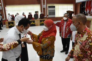 Alteripost.co Bandar Lampung – Walikota Bandar Lampung Eva Dwiana menutup secara resmi Pendidikan dan Pelatihan Dasar (Diklatsar) Calon Pegawai Negeri Sipil (CPNS) formasi umum Tahun 2020 angkatan I-V, di Gedung Semergou sekretariat Pemerintah Kota (Pemkot) Bandar Lampung. Kamis (2/6/2022).