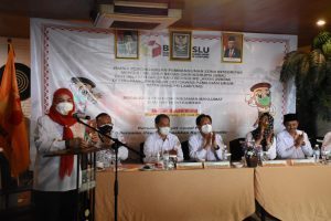 Alteripost.co BANDAR LAMPUNG – Walikota Bandar Lampung Eva Dwiana menghadiri rapat pencanangan pembangunan zona integritas menuju wilayah bebas dari korupsi dan wilayah birokasi bersih, serta penandatanganan maklumat dan pakta integritas bersama Badan Pengawas Pemilu (Bawaslu) Kota Bandar lampung, di Rubby Coffe Shop Hotel Emersia. Rabu (15/6/2022).