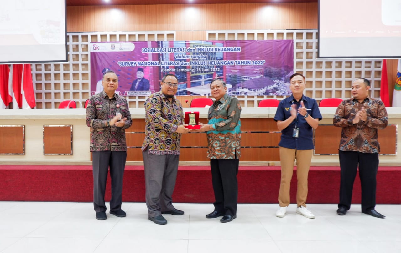 Kantor Otoritas Jasa Keuangan (OJK) Provnsi Lampung, bekerja sama dengan Pemerintah Kota (Pemkot) Bandarlampung, menyelenggarakan Sosialisasi Literasi dan Inklusi Keuangan dalam rangka Survey Nasional Literasi dan Inklusi Keuangan Tahun 2022, yang dihadiri seluruh camat, lurah, sekretaris dan bendaraha OPD se-Kotamadya Bandarlampung, kamis (16/6) bertempat di Gedung Semergou Kota Bandar Lampung.