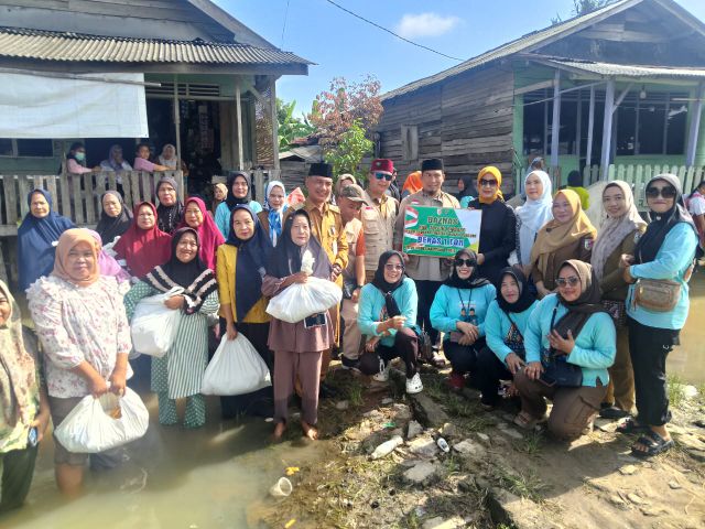 Ketua TP PKK Tuba Herlinawati Qudrotul Serahkan Bantuan Sembako Pada Warga Terdampak Banjir di Kecamatan Menggala