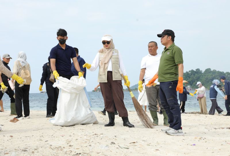 Alteripost Pesawaran – Wakil Gubernur Lampung Jihan Nurlela melakukan aksi bersih-bersih di kawasan wisata pesisir Pantai Mutun dan Pulau Tangkil, Pesawaran, Jumat (11/4/2025).