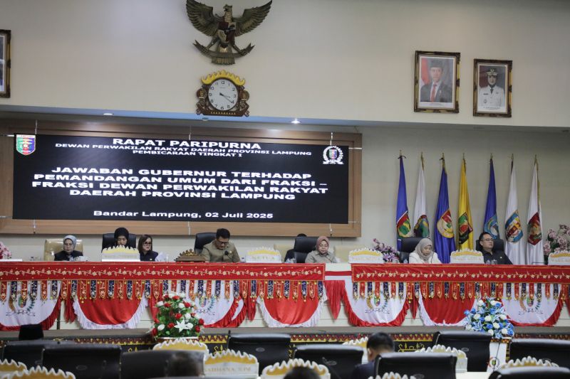 Jawaban Gubernur Lampung Rahmat Mirzani Djausal tersebut disampaikan oleh Wakil Gubernur Lampung Jihan Nurlela dalam Rapat Paripurna Dewan Perwakilan Rakyat Daerah (DPRD) Provinsi Lampung di Ruang Sidang Paripurna DPRD Provinsi Lampung, Rabu (2/7/2025).