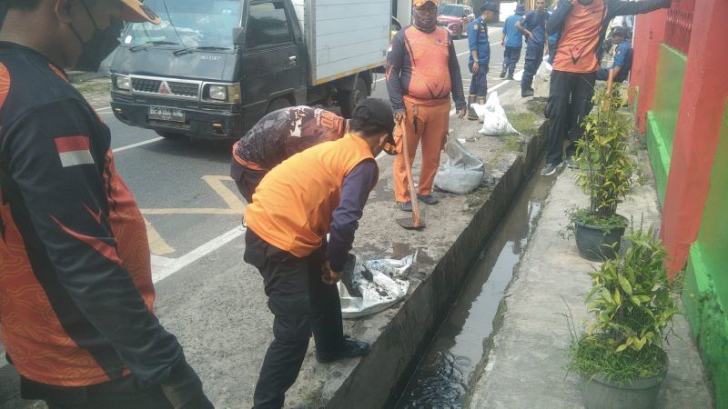 Berdasarkan pantauan, satgas gabungan yang terdiri dari BPBD, DLH, Satpol PP, Dinas Pekerjaan Umum, kecamatan, kelurahan, serta linmas, melakukan pembersihan drainase di sejumlah titik.