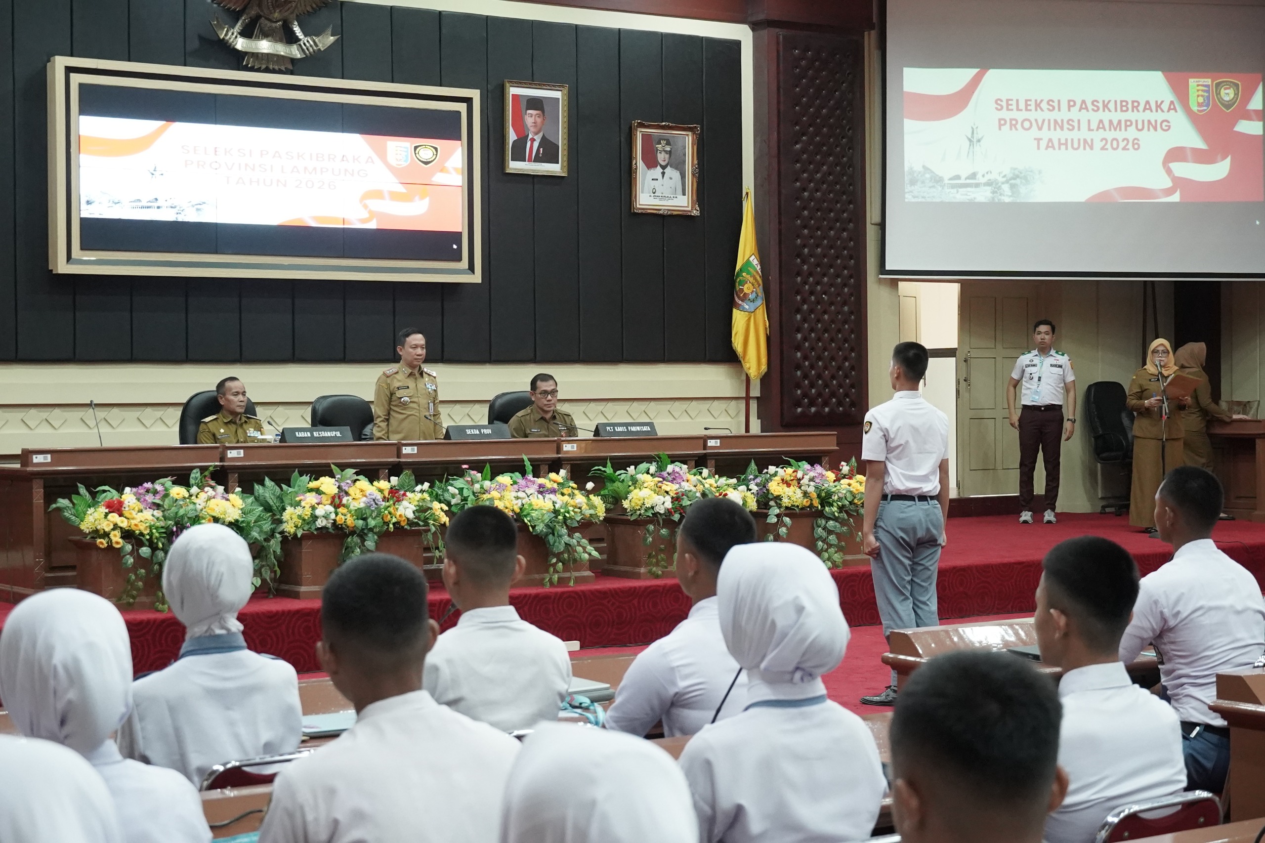 Pemerintah Provinsi (Pemprov) Lampung resmi membuka Seleksi Calon Anggota Pasukan Pengibar Bendera Pusaka (Paskibraka) Tingkat Provinsi Lampung dan Tingkat Nasional Tahun 2026 di Gedung Pusiban, Senin (27/4/2026).